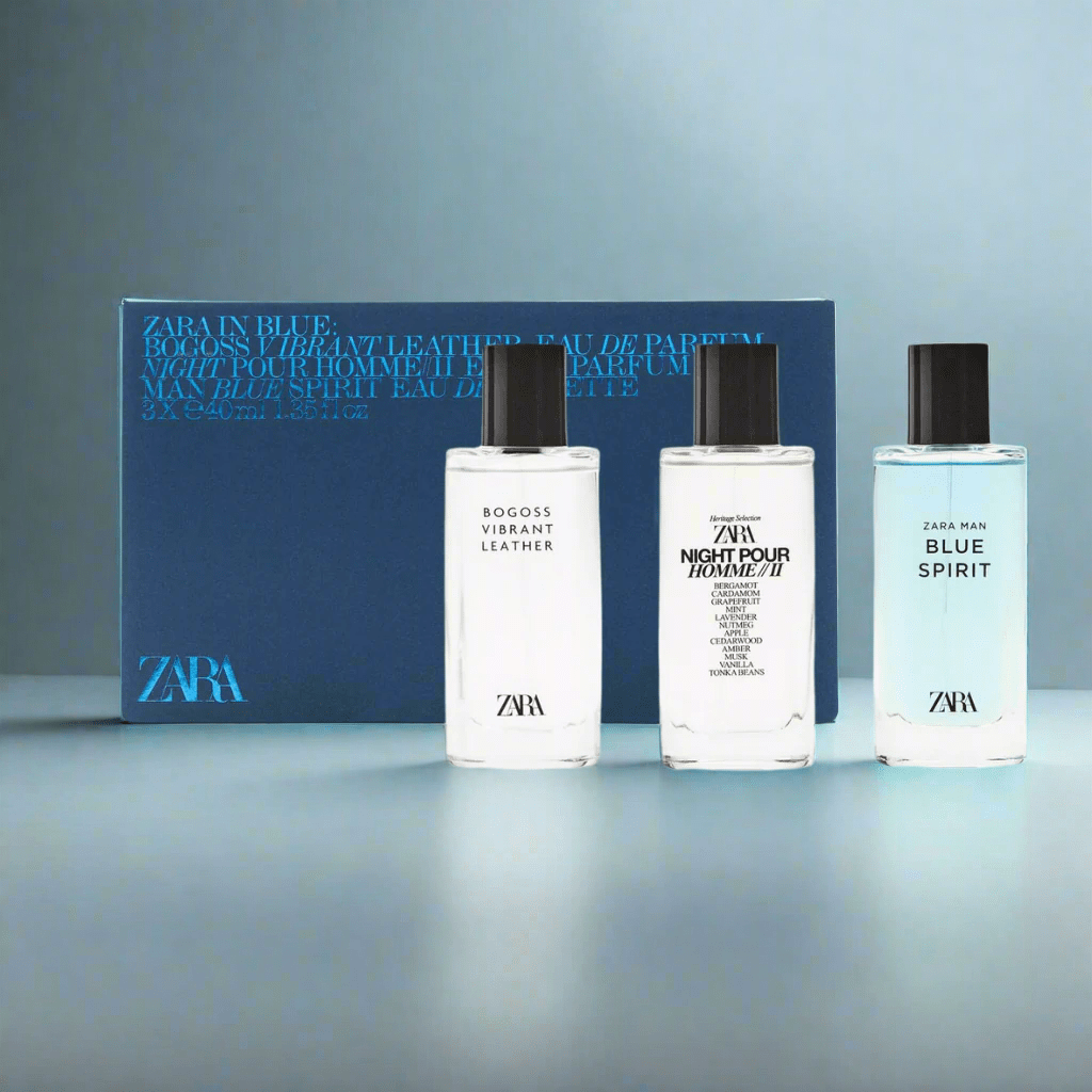 Elevate your fragrance wardrobe with the Zara In Blue Set Eau de Parfum – 3 x 40ml, a curated collection of three distinctive scents tailored for the dynamic and modern man. From bright citrus blends to deep ambery warmth, this special edition discovery set is designed to match your every mood and moment.