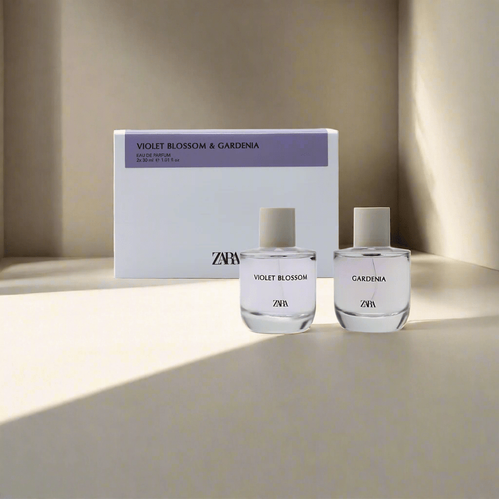 Step into a world of graceful florals and warm sensuality with the Zara Violet Blossom + Gardenia Eau de Toilette Duo – 2 x 90ml. This irresistible fragrance pair delivers a blend of fresh, delicate notes and rich, captivating florals, making it the perfect duo for every occasion.