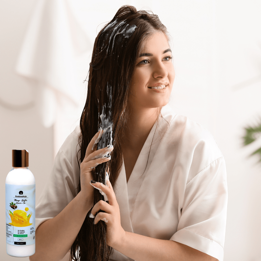 Goldies Hub Mango Butter Leave-in Conditioner delivers all-day hydration and nourishment in one lightweight formula. Enriched with the richness of mango butter, it penetrates deep into each strand to lock in moisture, restore softness, and enhance manageability. Perfect for daily use, this leave-in conditioner reduces frizz, strengthens hair, and leaves it with a silky, refreshed finish—making it an essential step in any healthy hair routine.