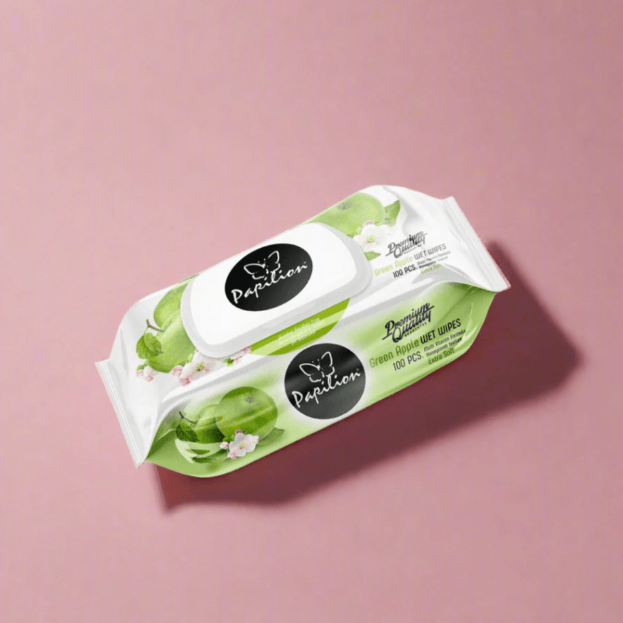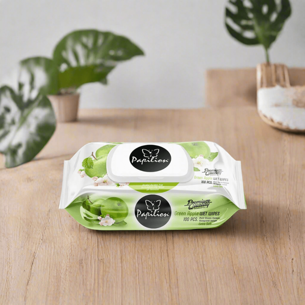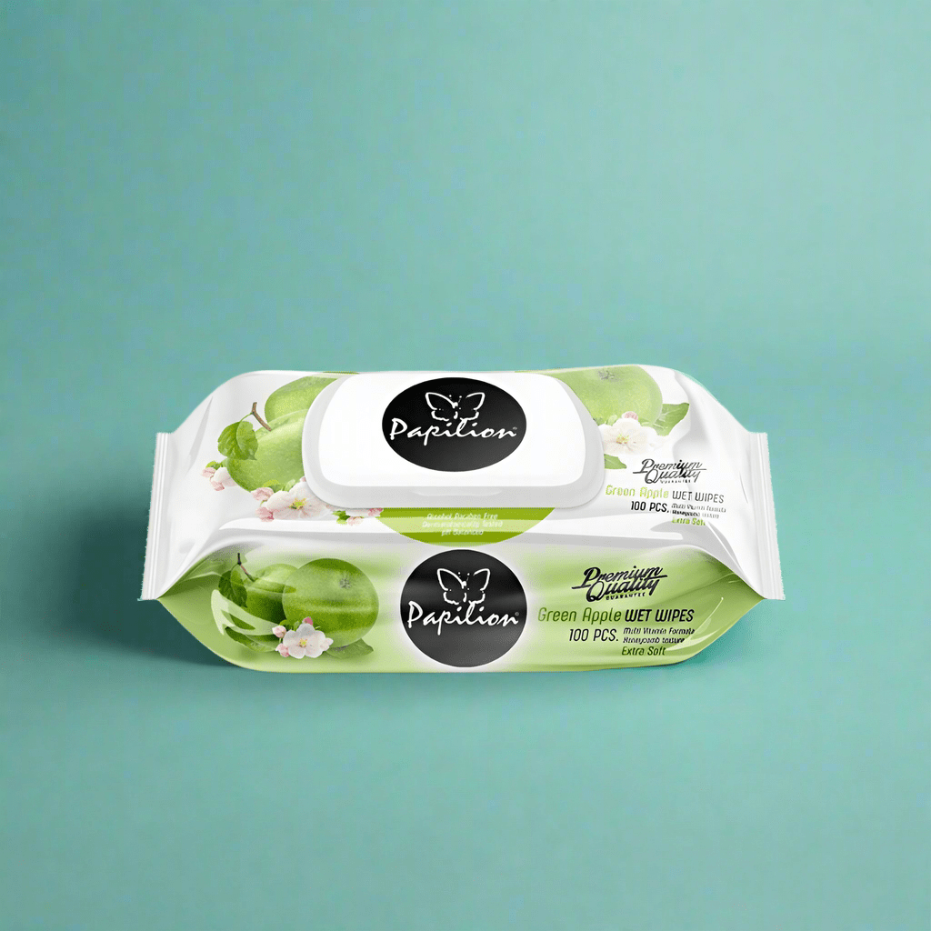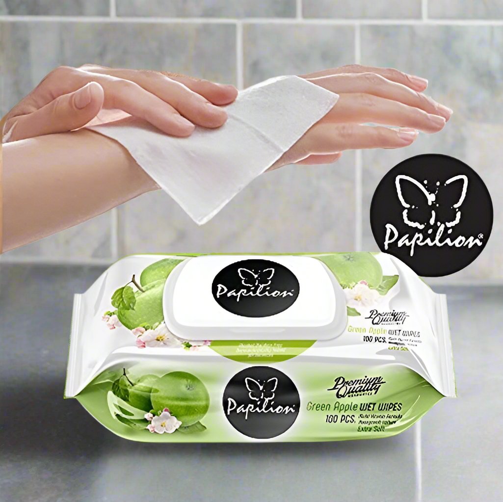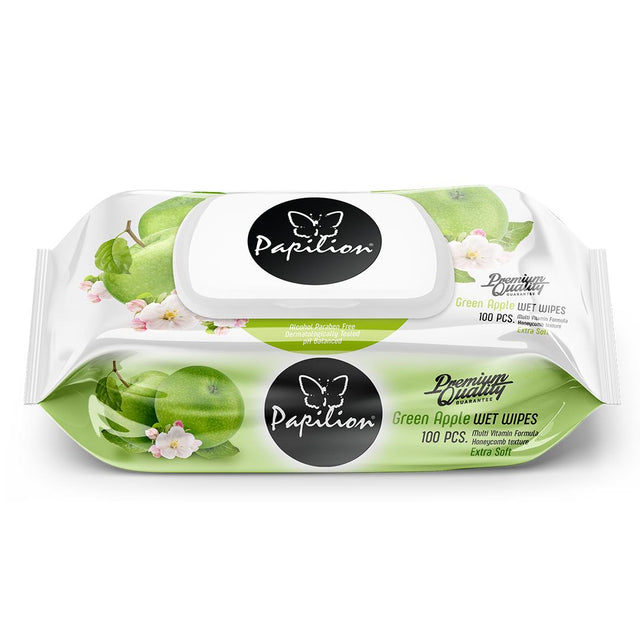 Papilion 100 Sheets Wet Wipes With Green Apple and Cap Seal